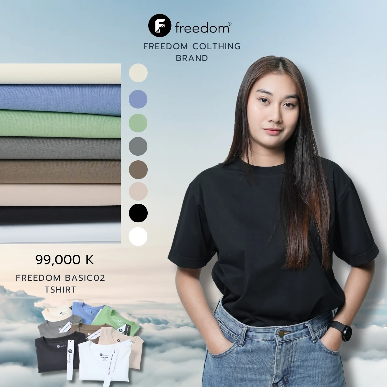 FREEDOM ເປັນໂຮງງານຮັບຜະລິດເສື້ອຜ້າ ເຊັ່ນ ເສື້ອຍືດລາຄາສົ່ງ, ເສື້ອໂປໂລ, ເສື້ອຊ໊ອບ, ເສື້ອວອມ ແລະ ສິນຄ້າສ້າງແບຣນແບບຄົບວົງຈອນ ໂດດເດັ່ນດ້ວຍບໍລິການຕັ້ງແຕ່ອອກແບບ, ຜະລິດ, ປັກ-ສະກຣີນໂລໂກ້ ຈົນເຖິງການຈັດສົ່ງ ມີເນື້ອຜ້າໃຫ້ເລືອກຫຼາກຫຼາຍ ພ້ອມບໍລິການດ່ວນພິເສດ FREEDOM ສົ່ງສິນຄ້າແບບເລັ່ງດ່ວນ ດ້ວຍຄຸນນະພາບ ແລະ ການບໍລິການລະດັບສູງ ເປັນທາງເລືອກທີ່ເໝາະສົມສຳລັບທຸກອົງກອນ ທີ່ຕ້ອງການສ້າງແບຣນແລະ ພາບລັກໃຫ້ໂດດເດັ່ນ