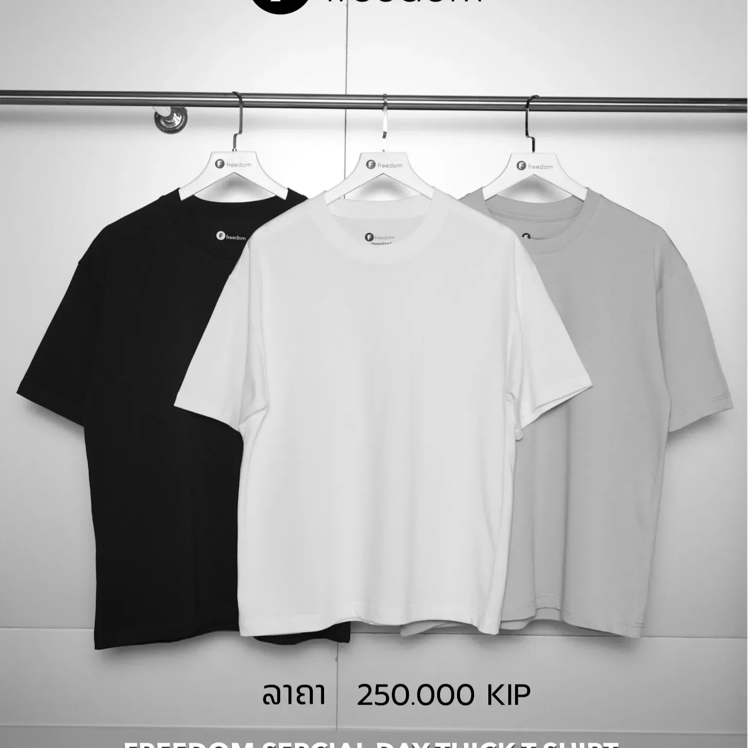 FREEDOM SPECIALS DAYS THICK TSHIRT ລຸ້ນທີ່ ເປັນຝ້າຍ cotton 100% NO.20 (ໂດຍສະເພາະ Premium Cotton) ເຮັດໃຫ້ຜ້າມີຜິວສຳຜັດທີ່ນຸ່ມນວນ ແລະ ອ່ອນໂຍນຕໍ່ຜິວໜັງ. ການລະບາຍອາກາດ ໂຄງສ້າງຂອງຜ້າ ຝ້າຍຊ່ວຍໃຫ້ອາກາດຖ່າຍເທໄດ້ດີ, ບໍ່ອົບເອົ້າ, ເຮັດໃຫ້ຜູ້ໃສ່ຮູ້ສຶກເຢັນສະບາຍ, ເໝາະກັບອາກາດຮ້ອນ. ມີ ຄວາມຍືດຢຸ່ນ ໂຄງສ້າງຂອງການທໍແບບຍືດ (Knit) ເຮັດໃຫ້ຜ້າມີຄວາມຍືດຫຍຸ່ນ, ສາມາດເຄື່ອນໄຫວໄດ້ສະດວກ, ໃສ່ສະບາຍບໍ່ອຶດອັດ. ຄວາມທົນທານ ໂດຍລວມແລ້ວມີຄວາມທົນທານສູງ, ສາມາດຊັກໄດ້ເລື້ອຍໆ ບໍ່ຍ້ວຍຫຼັງຈາກຊັກ ໄດ້ດີກວ່າຜ້າຝ້າຍທົ່ວໄປ. ຮັກສາຮູບຊົງ ຄວາມໜາລະດັບເບີ 20 ເຮັດໃຫ້ຜ້າບໍ່ບາງຈົນເກີນໄປ, ສາມາດຮັກສາຮູບຊົງຂອງເຄື່ອງນຸ່ງໄດ້ດີ, ການຕັດຫຍິບທີ່ເປັນຊົງທີ່ສວຍງາມ. ການດູແລຮັກສາ ເປັນຜ້າທີ່ດູແລຮັກສາງ່າຍ, ສາມາດຊັກດ້ວຍເຄື່ອງຊັກຜ້າໄດ້.